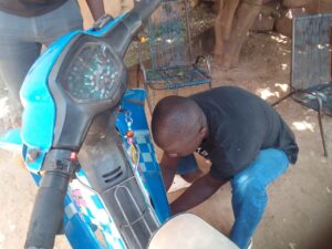 D’ateliers en ateliers, il a finalement pu avoir la confiance d’un chef d’atelier mécanique pour apprendre la réparation des motos. Il est aujourd’hui devenu le chef de l’atelier après le décès de son chef. Marié tout récemment, Bahaoussa est connu dans la région de Mopti et apprécié par ses clients pour son travail remarquable. À signaler que la séance de démonstration a consister à changer le disque d’une moto Djakarta.
